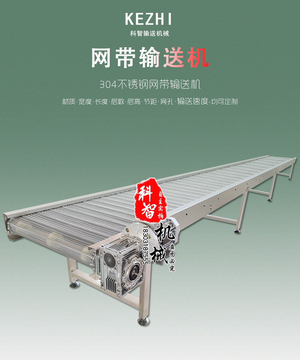 功能擴(kuò)展:可集成多層網(wǎng)帶、擋板、爬坡結(jié)構(gòu),如果蔬清洗機(jī)專用輸送帶、可調(diào)角度爬坡設(shè)備。